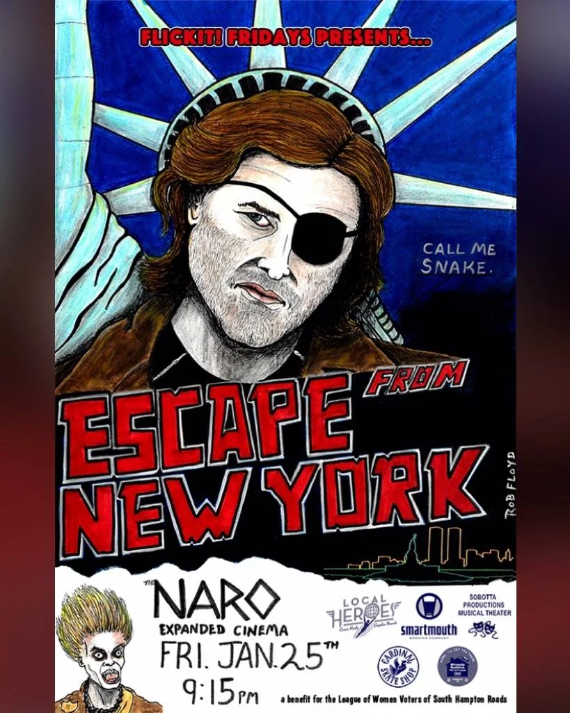 In 1997, a major war between the United States and the Soviet Union is concluding, and the entire island of Manhattan has been converted into a giant maximum security prison. When Air Force One is hijacked and crashes into the island, the president (Donald Pleasence) is taken hostage by a group of inmates. Snake Plissken (Kurt Russell), a former Special Forces soldier turned criminal, is recruited to retrieve the president in exchange for his own freedom. (1981, R, 106mins)