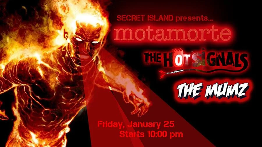 3 Bands, 1 Show...Your Local Favorites Mota Morte, The Mumz, and The Hot Signals will be in the building to tear the roof off of the historic building. Fill your ear holes with guitar shred on January 25th! Fun starts at 10 and is FREE to Everyone! Late night menu and drink specials