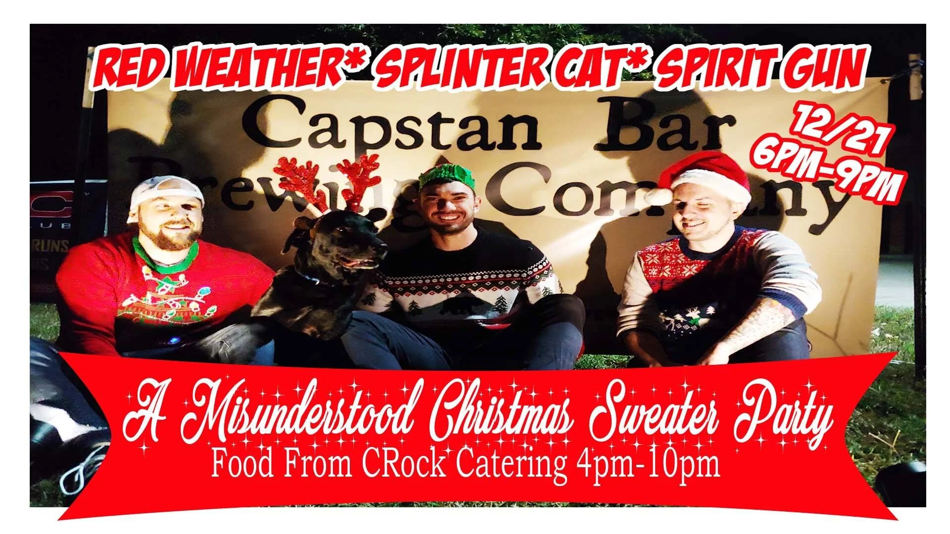 All sweaters need love! You call them ugly we call them misunderstood. Come see 3 bands in 1 night all for free! Join us as The Hotboys host this ugly sweater party. Come dressed in your best ugly sweater to win a gift card from Capstan. Our friends from the band Red Weather are ready to jam out this holiday season with Splinter Cat and Spirit Gun live at Capstan.