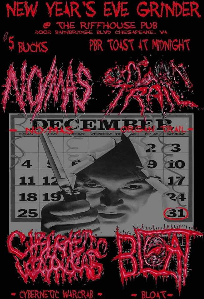 No/Mas and Organ Trail are wrapping up a 6-day run south with an all out, grind extravaganza on New Years Eve at The Riffhouse.