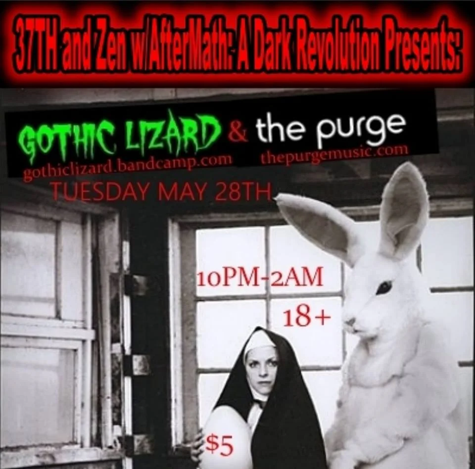 Nothing But Darkness Tour GOTHIC LIZARD (only) w/special guest THE PURGE!!! A special night of live music and resident DJ's spinning darkwave, gothic rock, post-punk, alternative rock, tribal darkness, electronic, ebm, industrial, deathrock, and synth-pop.