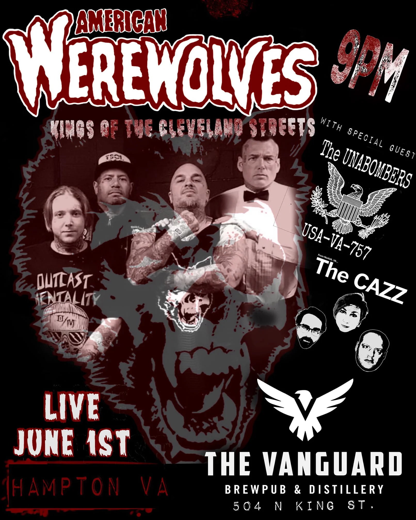 Cleveland punk rockers American Werewolves bring their horror punk tunes to Hampton joined by The Unabombers and the Cazz