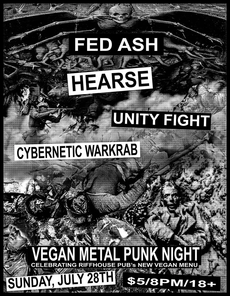 Riffhouse will now have vegan food options! The grand opening of the new menu will be combined with this show! Provided by Honest Pastures and Blakhart Coffee