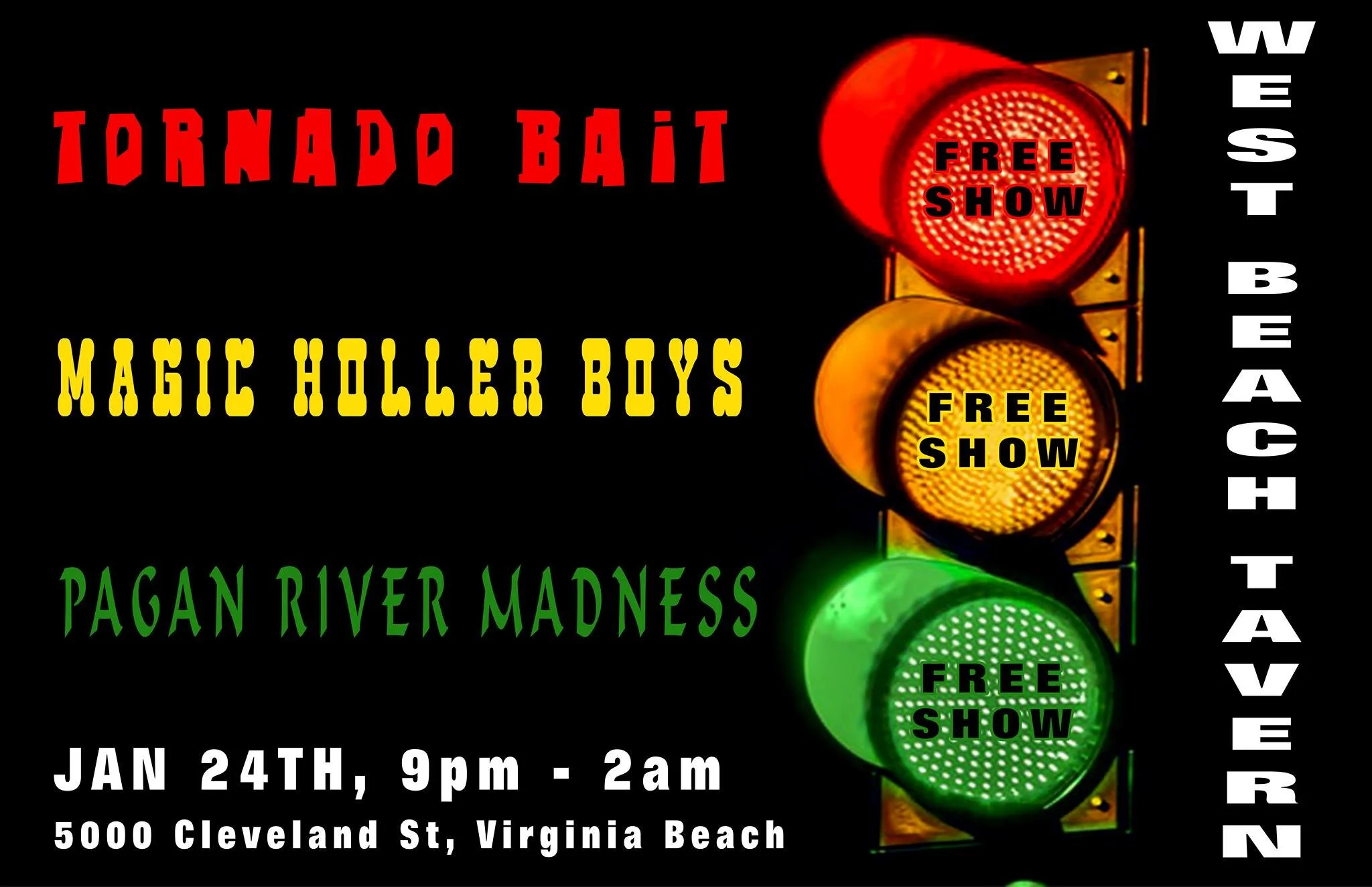 Stop, yield, go... I don't care what you have to do to make it to West Beach Tavern to see Tornado Bait, Magic Holler Boys or Pagan River Madness. It's National Compliment Day, however that won't stop Msesippi McQuown from popping off at the mouth! Be there or be square we're fixen' for a good time!